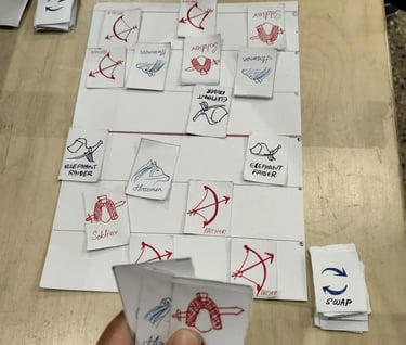Our initial prototype was inspired by games like Sequence and AVALON. Unfortunately, in our enthusiasm to create a game that was immersive it failed as it turned out to be quite complex. During this phase we also were exposed to Catan. This game showed us what a good backstory and objective can achieve for a game.