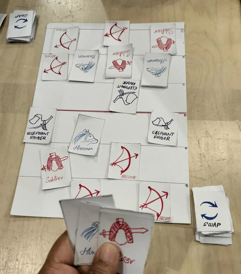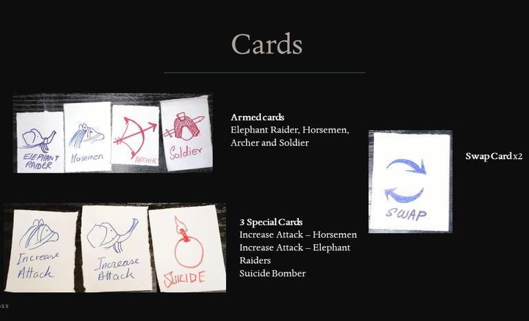 The game prototype and concept gained more clarity as we made progress with tweaks and repeated game play. Despite being a two-player game, the progression and strategy involved make it quite engaging. A variation of cards, particularly the special cards could make it even more challenging.